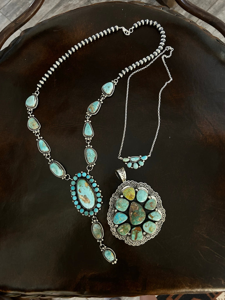 This is so unique. Made by Sunshine Reeves. Talk about a statement! 3 1/4 wide and 4 1/2" in length. Would fit any size of navajo beads.